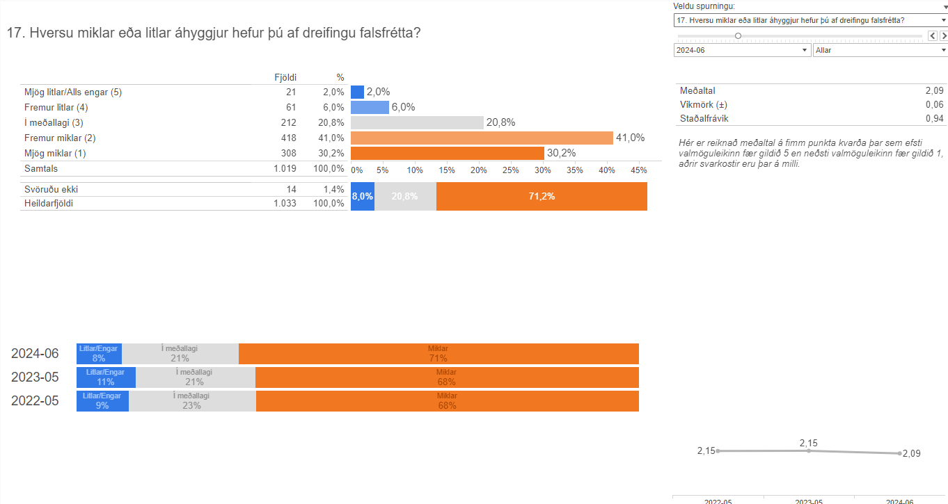 Fleiri telja fjölmiðlafrelsi mikið á Ísland en á síðasta ári en áhyggjur af dreifingu falsfrétta færast í aukana skv. niðurstöðum árlegrar skoðanakönnunar sem Maskína gerir fyrir utanríkisráðuneytið. Könnunin var lögð fyrir þjóðgátt Maskínu dagana 31. maí til 11. júní.