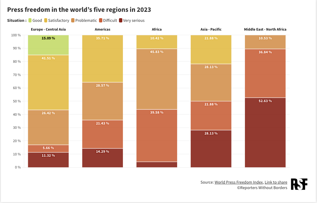 Á nýjasta lista Blaðamanna án landamæra yfir fjölmiðlafrelsi er Ísland í 18. sæti, þremur neðar en árið áður. Í dag, á Alþjóðadegi fjölmiðlafrelsis, var birtur árlegur alþjóðlegur samanburðarlisti yfir fjölmiðlafrelsi (World Press Freedom Index). Ísland kemur frekar illa út nú – fellur um þrú sæti milli ára, niður í 18. sæti.