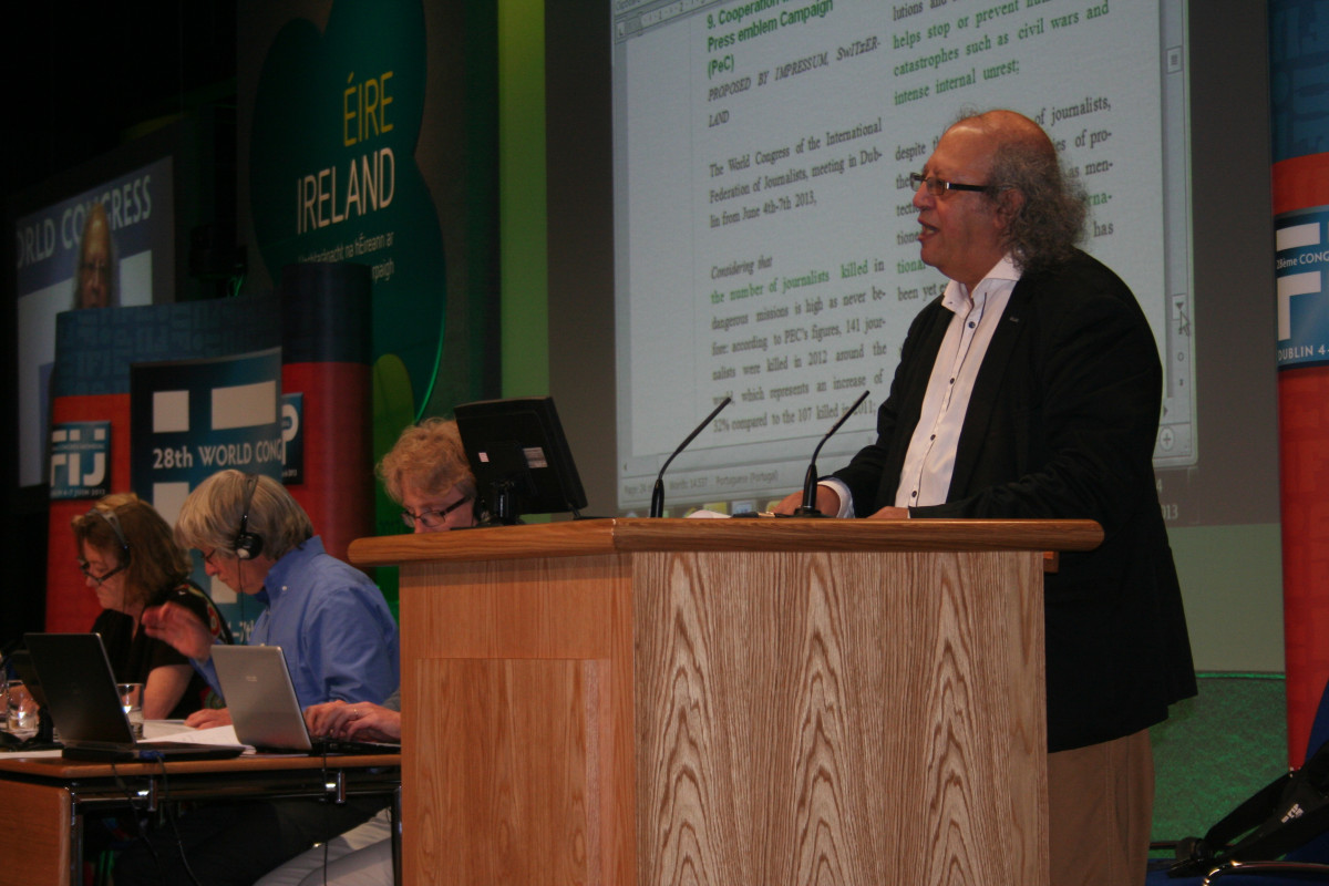Hér vísar hann til umdeildrar atkvæðagreiðslu um forseta IFJ, þegar Jim Boumelha var endurkjörin í naumri atkvæðagreiðslu þar sem mótframbjóðandi hans Philippe Leruth frá Belgíu fékk litlu færri atkvæði.