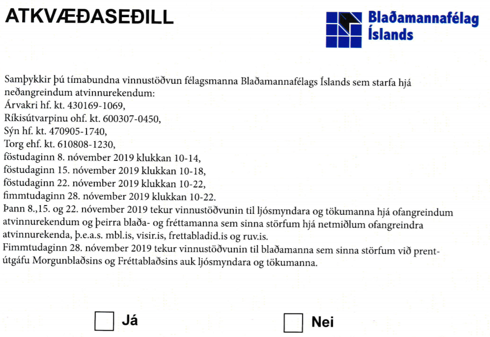 Verkfallið tekur eingöngu til netmiðla og ljósmyndara og tökumanna í fyrstu þremur skiptunum og