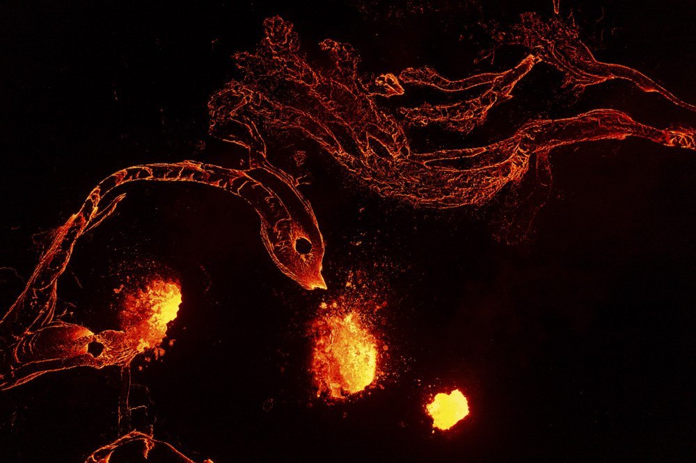 Vilhelm Gunnarsson, ljósmyndari Vísis, hlaut í dag verðlaun fyrir mynd ársins á verðlaunaafhendingu Blaðaljósmyndarafélags Íslands, Veitt voru verðlaun í 7 flokkum auk bestu myndar ársins, sem var mynd Vilhelms af eldgosinu í Geldingadölum.